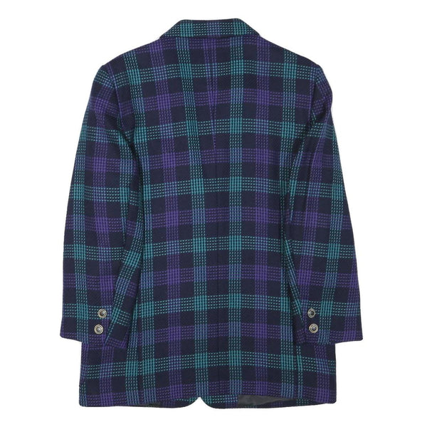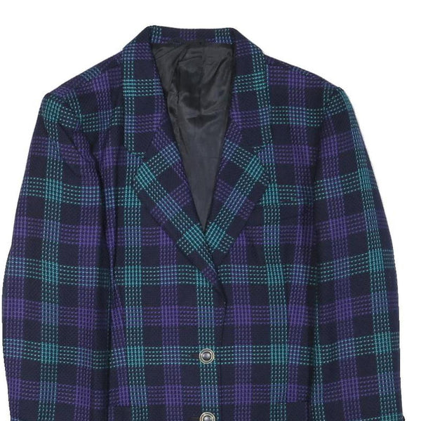 DELMOD Womens Blue & Purple Check Wool Jacket M Woven Classic Button Closure