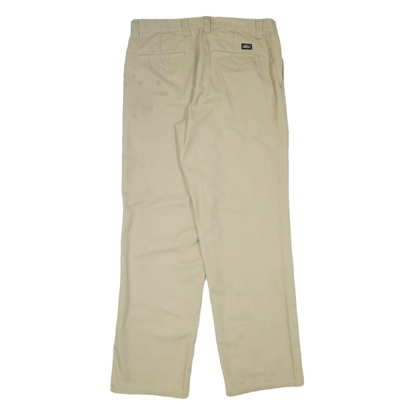 DICKIES Mens Cotton Blend Beige Regular Fit Straight Leg Trousers W32 L31