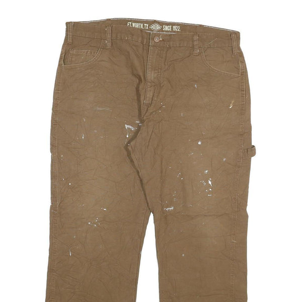 DICKIES Mens Regular Fit Brown Denim Cotton Blend W38 L29 Workwear Trousers