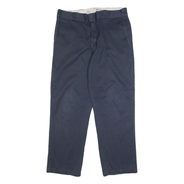 DICKIES Mens Regular Fit Navy Blue Cotton Blend Straight Leg Trousers W38 L29