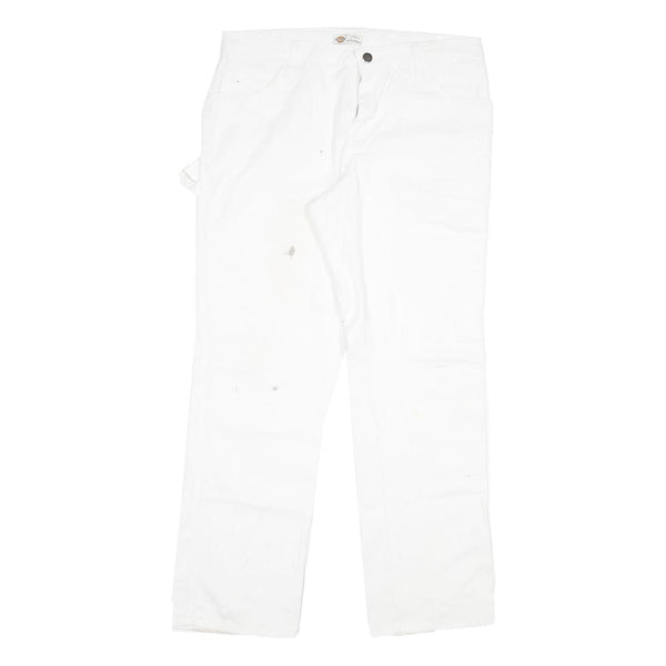 DICKIES Womens Regular White Denim Jeans W34 L31 Workwear Straight Zip Cotton
