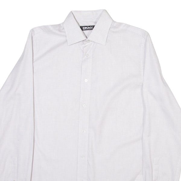 DKNY Mens Shirt White Check Long Sleeve M