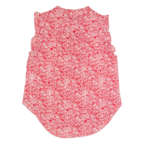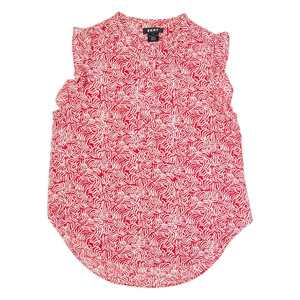 DKNY Womens Printed Shirt Red High Neck Sleeveless Crazy Pattern M