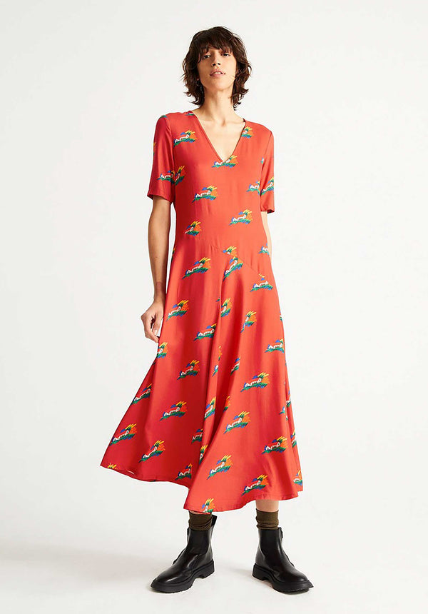 An easy style for casual days, this Printed V-neck Maxi Dress from THINKING MU is brought to life with a pretty shape. Finished with v-neckline, short sleeves for ease of movement, this piece pairs perfectly with plimsolls for relaxed days out in the sun. Model is 177cm tall and wears size S.