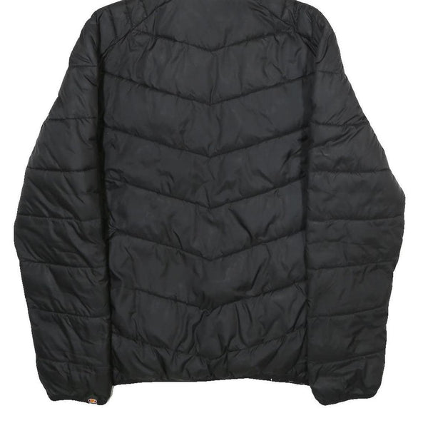 ELLESSE Mens Black Grey & White Hooded Quilted Jacket L Polyester Zip