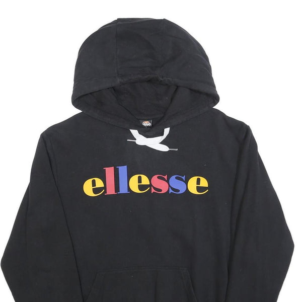 ELLESSE Mens Black Multicolour Logo Pullover Hoodie M Cotton Blend Casual