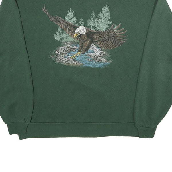 ENDLESS DESIGNS Womens Green Eagle Graphic Crew Neck L Sweatshirt Cotton Blend