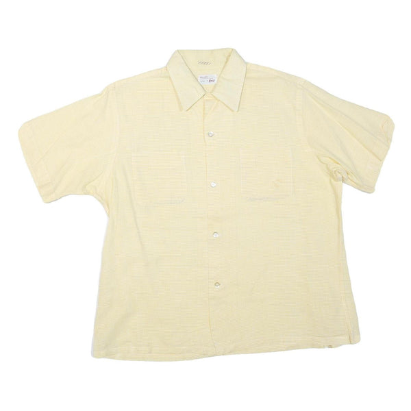 ENDURO Mens Cream Check Shirt L Cotton Blend Casual Short Sleeve Relaxed Fit