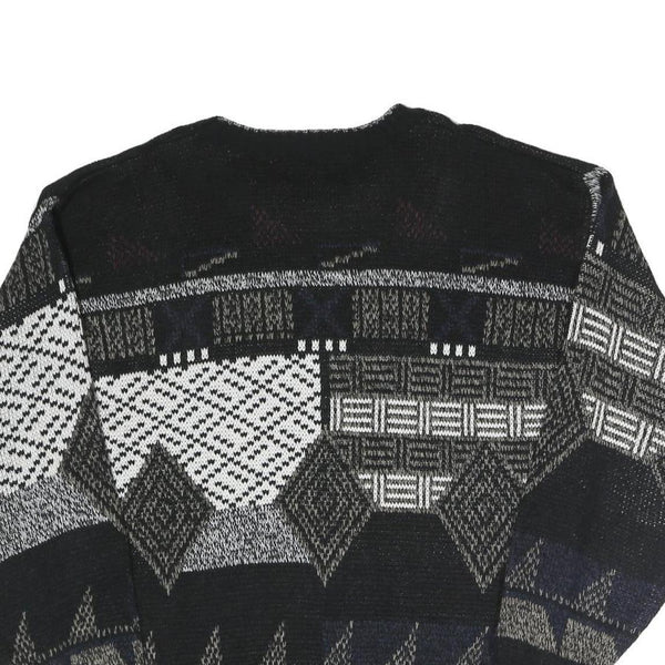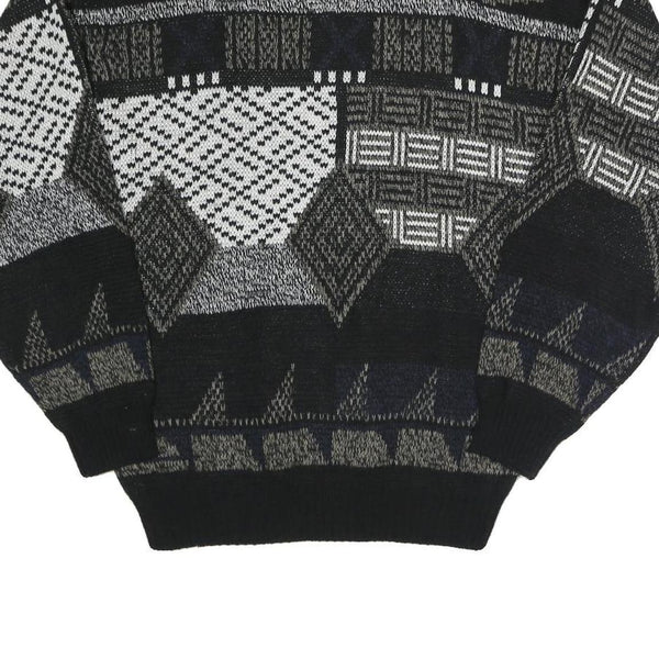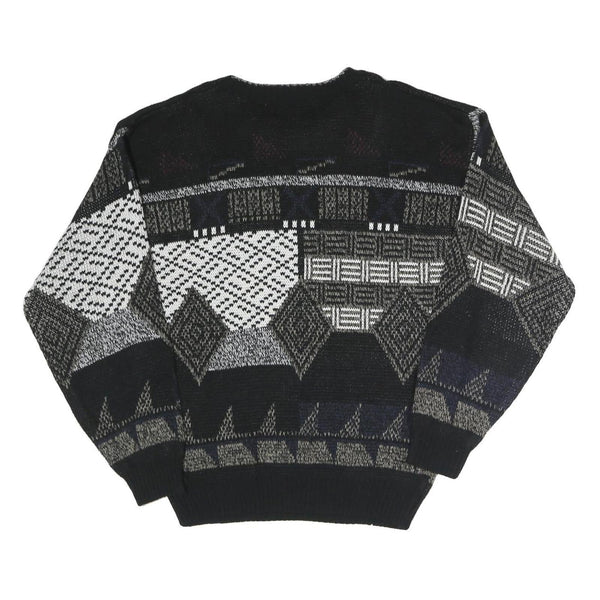 EXPRESSIONS Mens Black Grey Patterned Acrylic Jumper Crew Neck L Casual Comfort