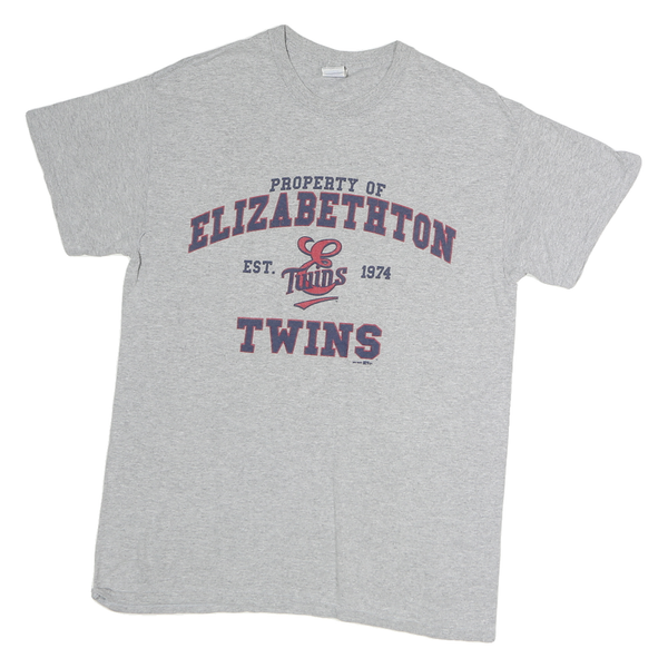 Gildan mens grey property of elizabethton twins graphic t-shirt m crew neck