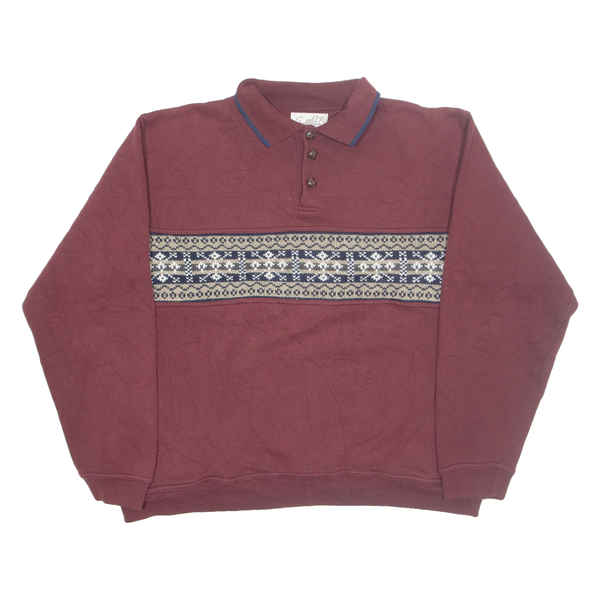 GRAND PALMER Mens Sweatshirt Maroon Button Neck M