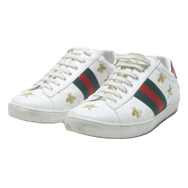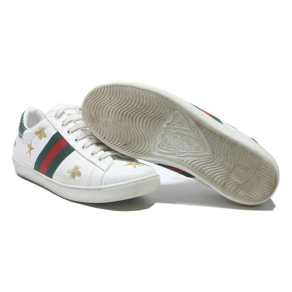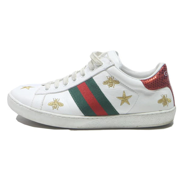 GUCCI Ace Womens Leather Sneaker White Green & Red UK 6 Embroidered Bee Star