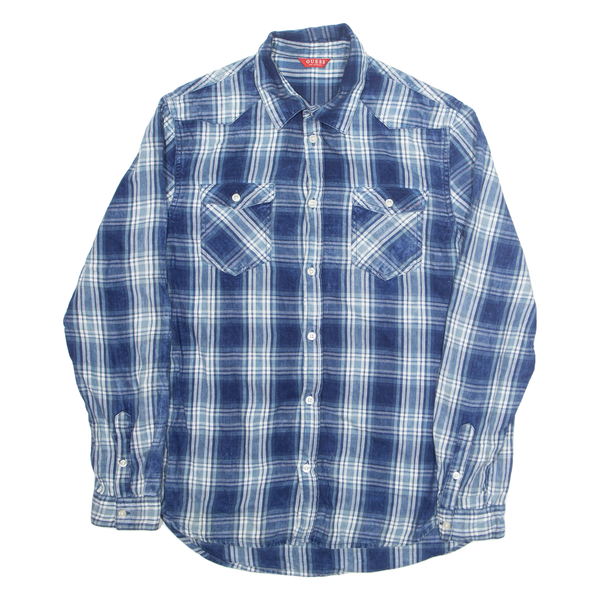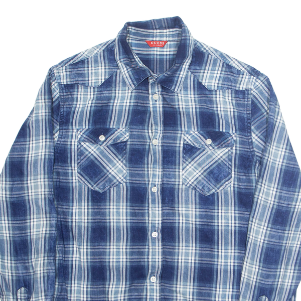 GUESS Mens Shirt Blue Check Long Sleeve M