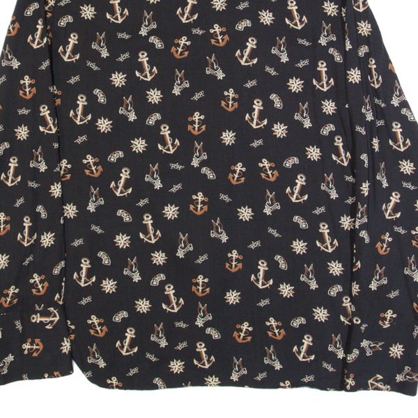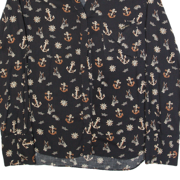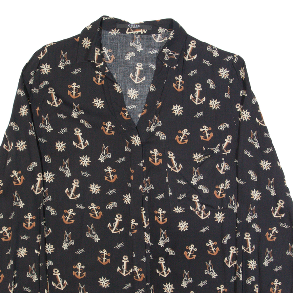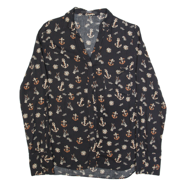 GUESS Womens Shirt Black Crazy Pattern Long Sleeve L