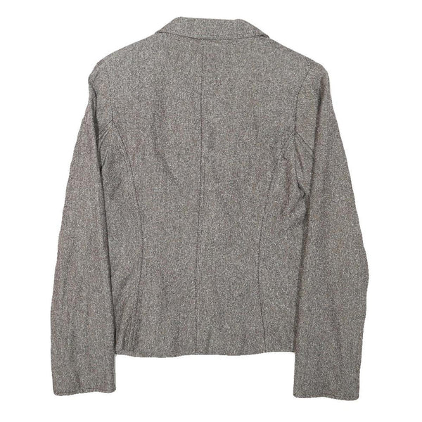 H&M Womens Grey Brown Cotton Blend Button Jacket S Woven Tailored Chic