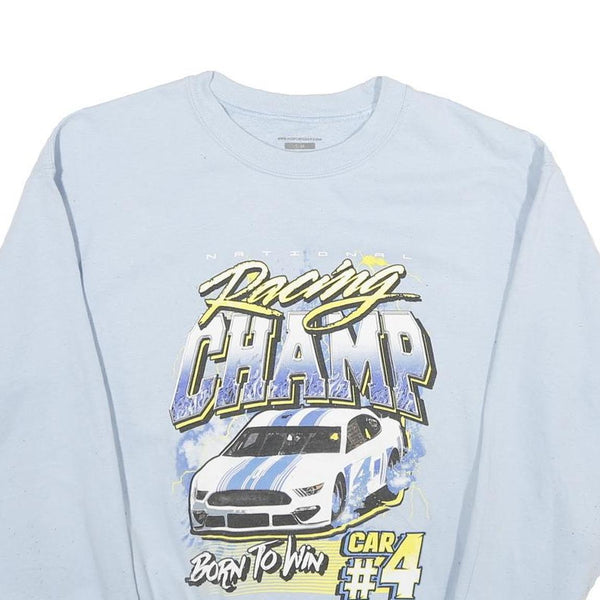 H3S SPORTSGEAR Mens Light Blue Racing Champ Car Graphic Crew Neck S Sweatshirt