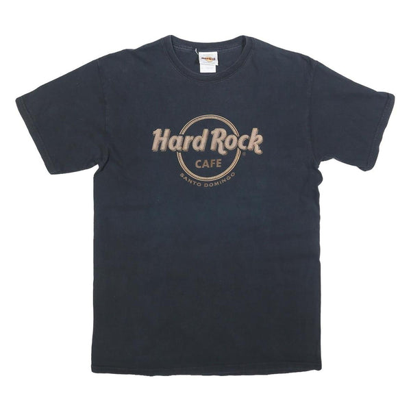 This Hard Rock Cafe T-shirt is in a classic black colour featuring the iconic Hard Rock logo printed in beige on the chest, with the location "Santo Domingo" text below. The print stands out clearly against the solid black background for a bold yet simple look.