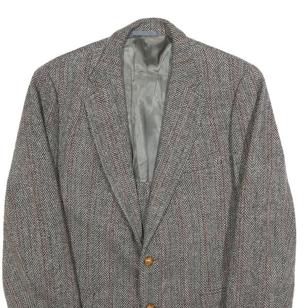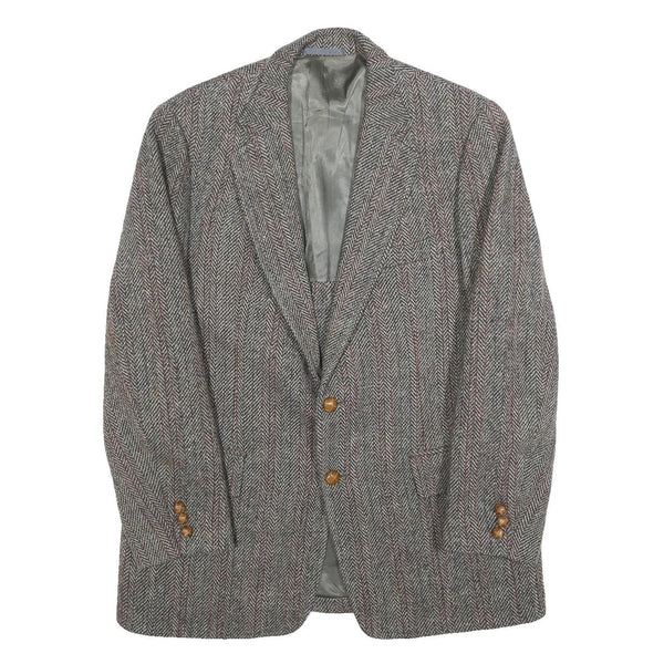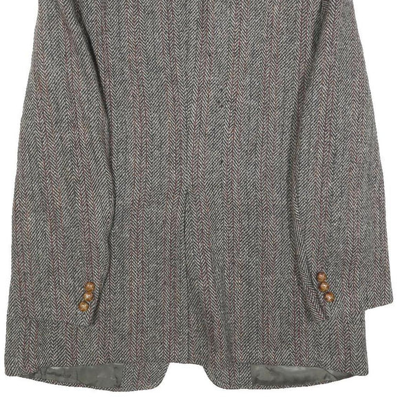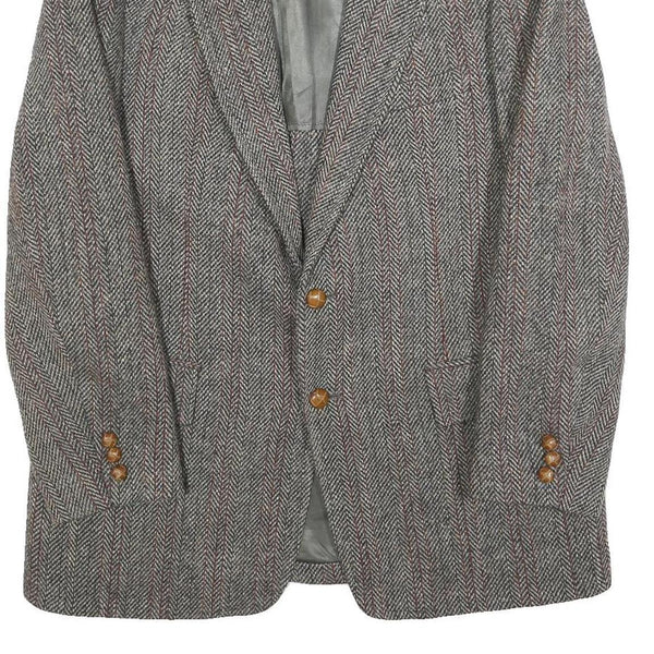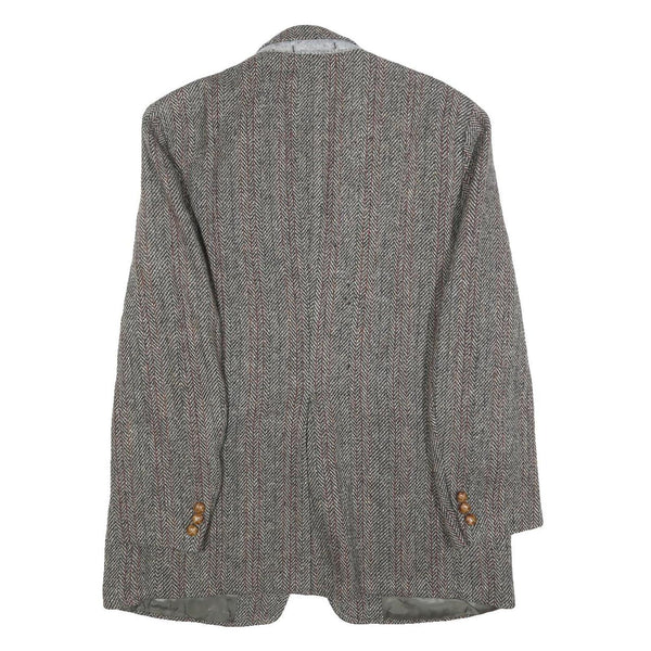 HARRIS TWEED Mens Brown Grey Wool Herringbone Tailored Jacket L Button Closure