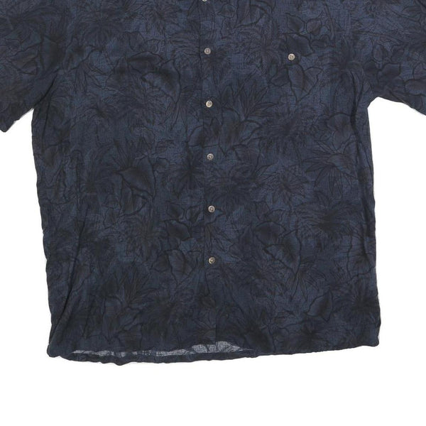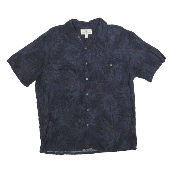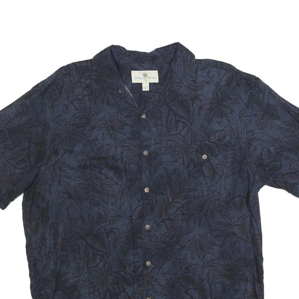 ISLAND SHORES Mens Blue Rayon Hawaiian Shirt L Tropical Print Lightweight