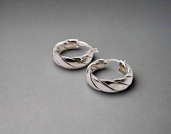Elevate your everyday style with our Italian Twirl Silver Hoop Earrings. These mid-sized hoops are expertly crafted in Italy, featuring a captivating twist design that adds a unique twist to the classic hoop earring. Their medium size strikes the perfect balance between statement and subtlety, making them a versatile accessory for any occasion. Embrace the Italian craftsmanship and contemporary elegance of these hoop earrings that are sure to turn heads wherever you go.