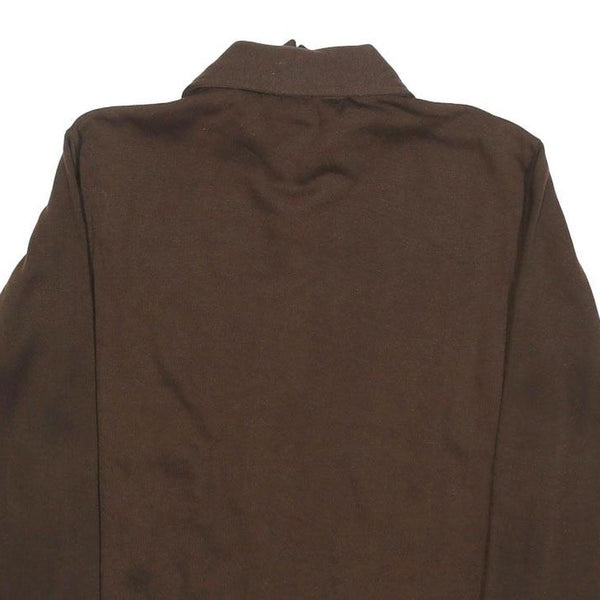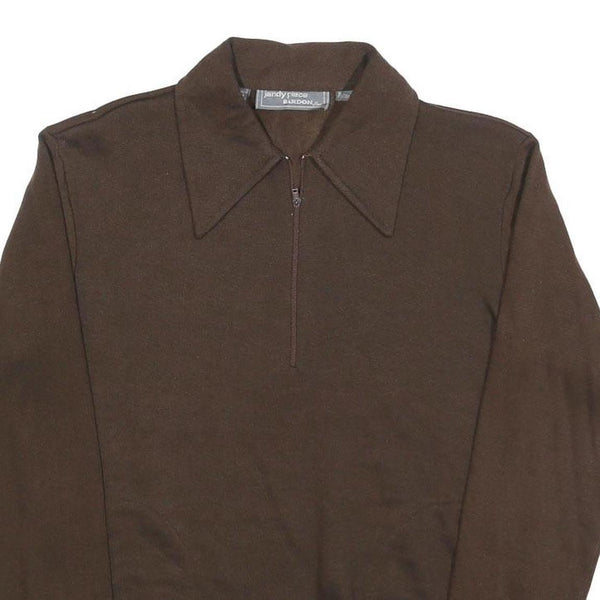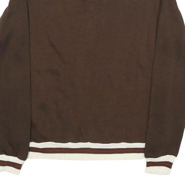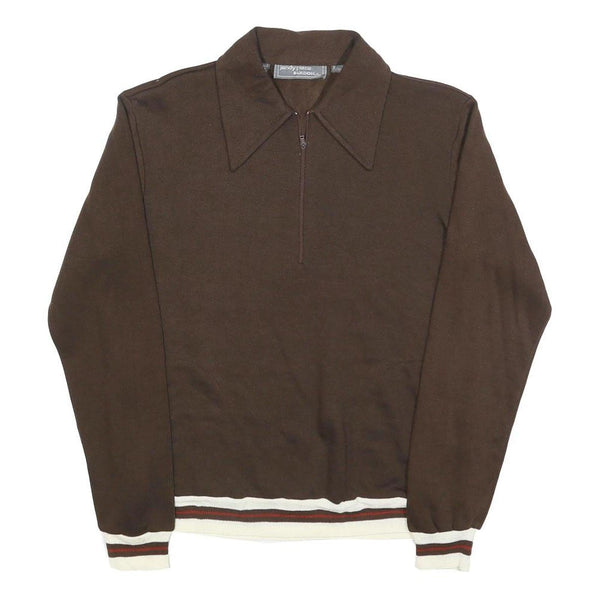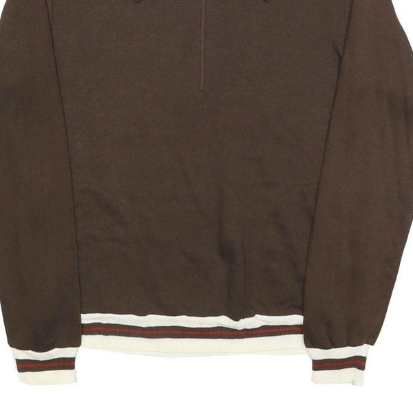 JANDY PLACE Womens Brown Polo Collar M Sweatshirt Zip Neck Retro Striped Hem