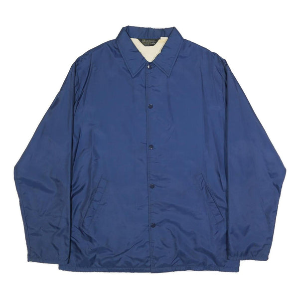 JC PENNEY Mens Blue Nylon Button Jacket L Plain Lightweight Casual