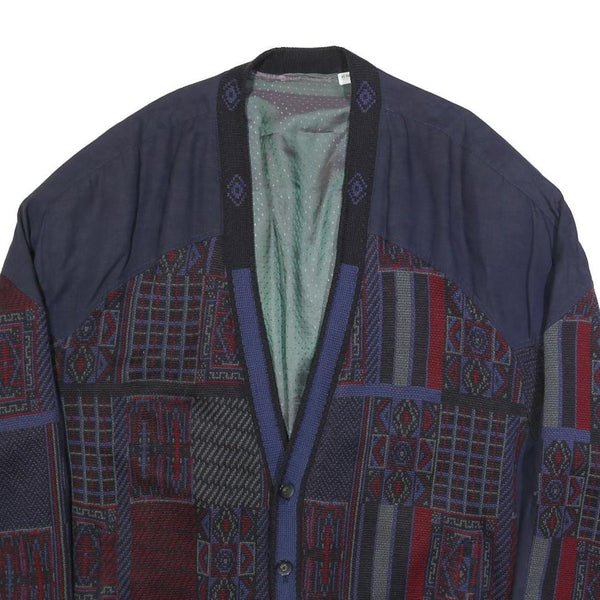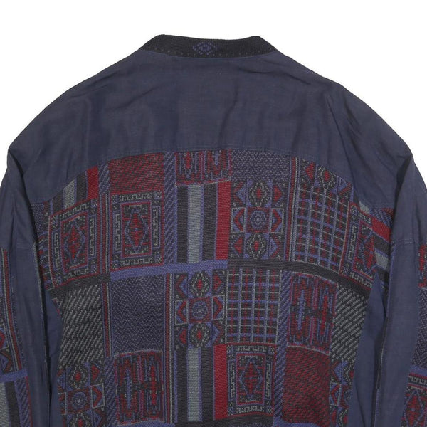 JUPITER Mens Blue & Red Linen Blend Button Jacket 2XL Geometric Pattern