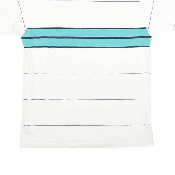 K-PRODUCTS Mens White & Teal Striped Short Sleeve Polo Shirt M Logo Embroidered