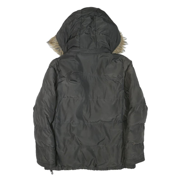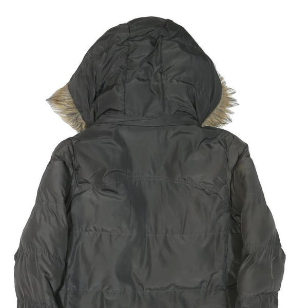 KAPPA Womens Grey Faux Fur Hooded Zip Jacket L Polyester Blend Puffer Warm