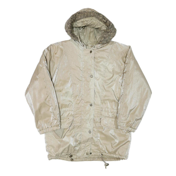 KARIZMA Womens Beige Polyester Blend Hooded Jacket M Zip Plain Casual Outerwear