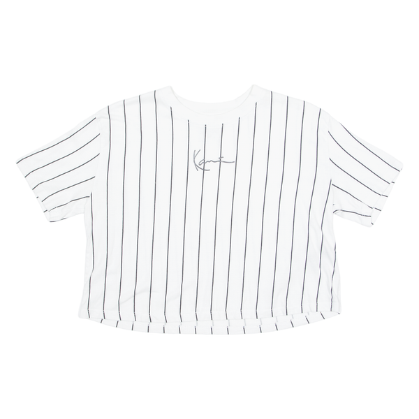 KARL KANI Cropped Striped Womens T-Shirt White Crew Neck S