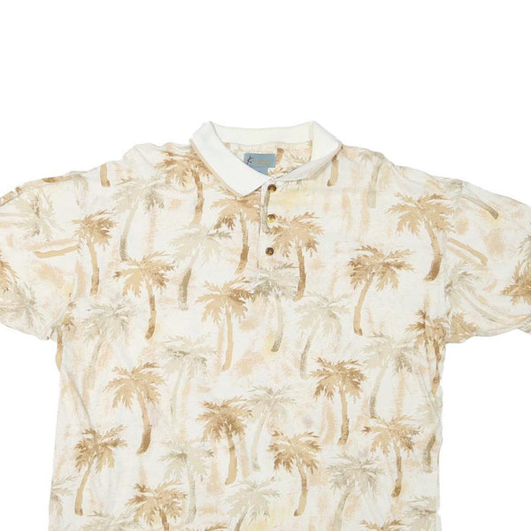 KAYLUA BAY Womens Beige Palm Tree Print Short Sleeve Polo Shirt XL Summer Casual
