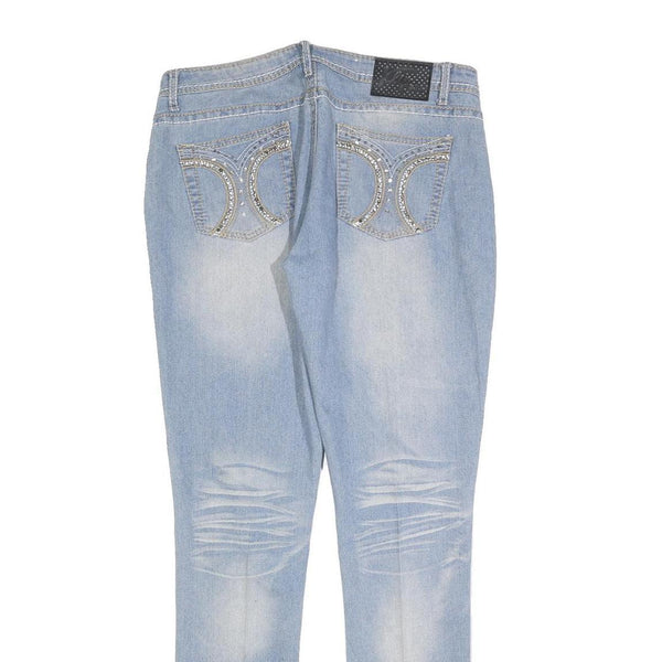 KLIP Womens Slim Slip On Light Blue Denim Jeans W32 L32 Embellished Pockets