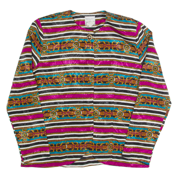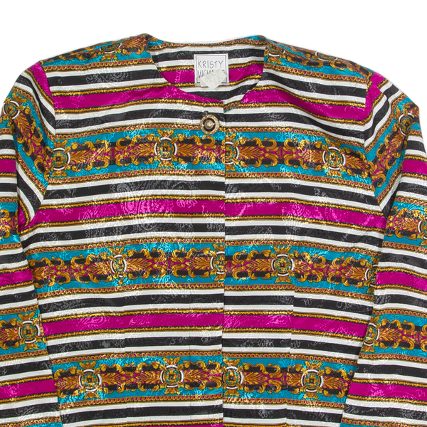 KRISTY MICHAELS Womens Printed Shirt Black Long Sleeve 90s Striped S