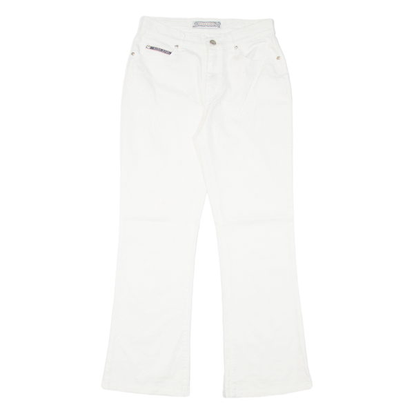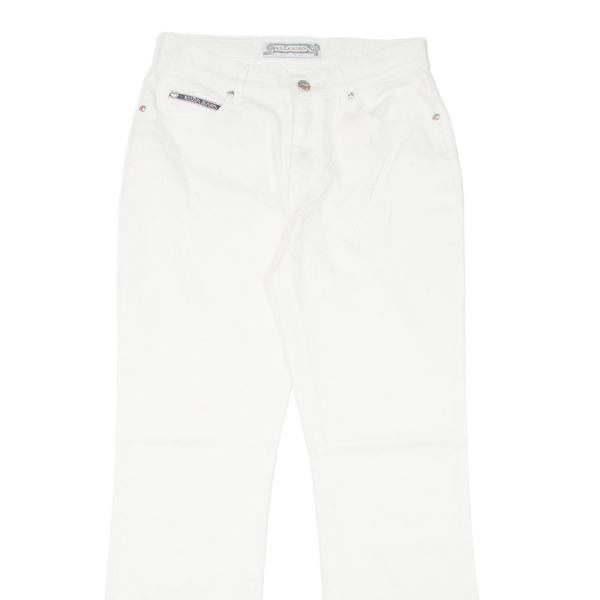KRIZIA JEANS Floral Embroidered Womens Trousers White Regular Bootcut W25 L27