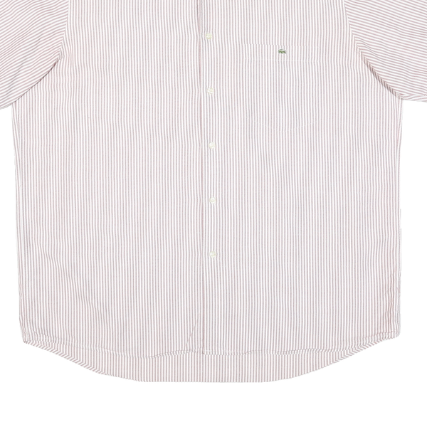 LACOSTE Mens White & Red Stripe Cotton Blend Shirt L Casual Button Down Summer