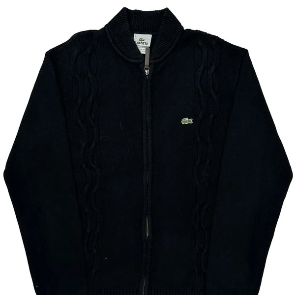 Black Lacoste Top With Zip Front And Cable Knit Design.