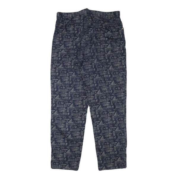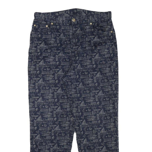These Lauren Ralph Lauren womens trousers feature a navy base with an all-over subtle grey geometric print resembling architectural sketches. The cotton blend fabric provides a soft, breathable feel suitable for everyday wear. They have a classic straight leg cut with a regular fit offering comfort and style.