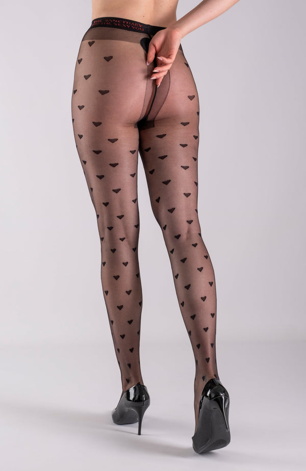 Lechery European made tights. Designed in New York. Ready for Valentine's Day? So are your tights! These classic pair of tights with heart patterns feature a reinforced top that will keep you comfortable the whole day while also enhancing your entire outfit. The perfect match for your Valentine's Day outfit.