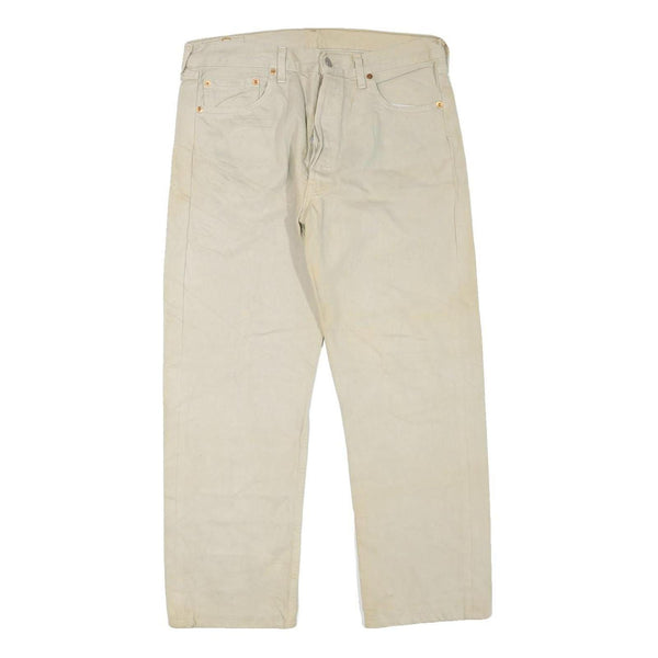 Levi's 501 mens jeans beige regular straight denim w34 l26 button cotton blend
