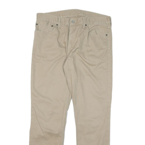 LEVI'S Mens Regular Fit Beige Cotton Blend Trousers W34 L32 Zip Closure Casual