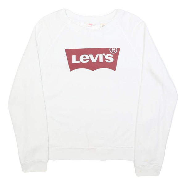 LEVI'S Womens White Cotton Blend Crew Neck Sweatshirt L Logo Print Casual