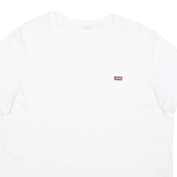 LEVI'S Womens White Graphic T-Shirt XL Short Sleeve Crew Neck Logo Patch