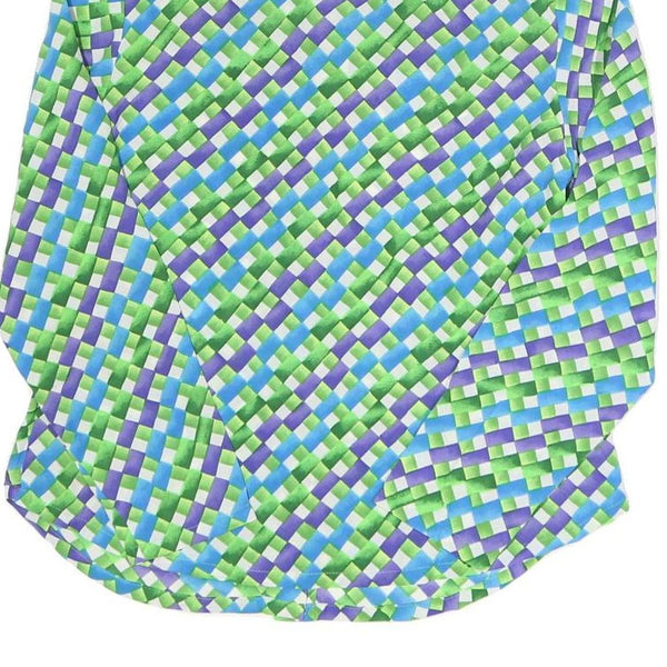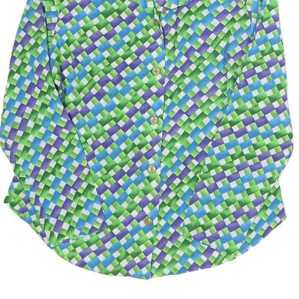 LIANG YEOI Womens Green & Blue Printed Shirt Long Sleeve Collared M Polyester