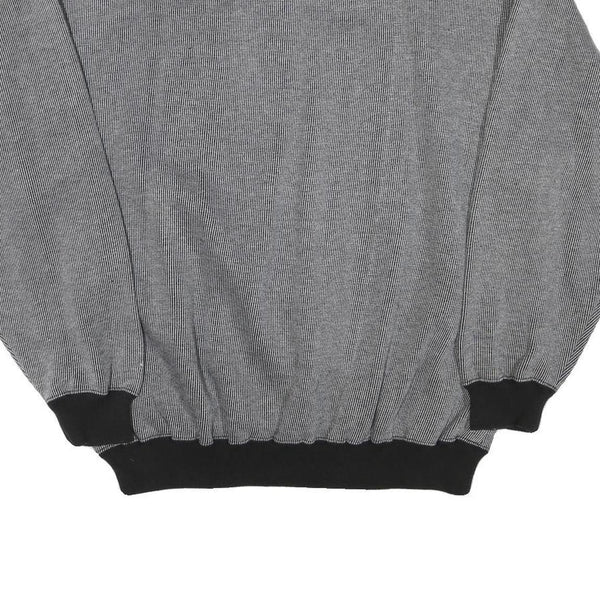 This Logo Athletic mens sweatshirt features a subtle grey base with a micro stripe pattern, detailed with black ribbed cuffs, hem and neckline. The front sports an embroidered Pittsburgh Steelers logo and text in yellow and white, adding notable team branding to the casual pullover.