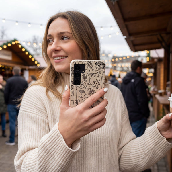 Get your phone party-ready with the Holiday Dinner Party Phone Case! Featuring delightful sketches of holiday feasts, festive drinks, and gingerbread treats, this case brings all the magic of a cozy gathering right to your fingertips. Made from plants and designed for earth-friendly protection, it’s perfect for those who love to eat, drink, and be merry in style. Lightweight, durable, and brimming with holiday cheer—this case is the ultimate accessory for spreading joy at every celebration!