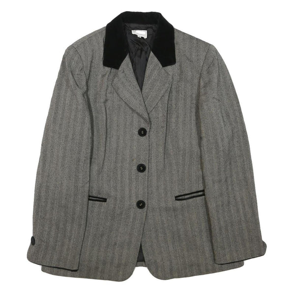 LUISA SPAGNOLI Womens Grey & Black Wool Blend Herringbone Jacket UK 18 Button
