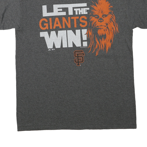 MAJESTIC Mens Grey Let The Giants Win Graphic T-Shirt L Short Sleeve Crew Neck
