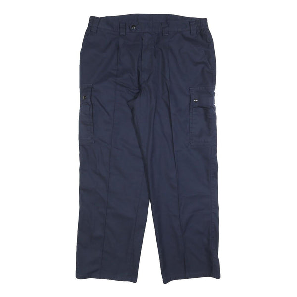 MARSUM Mens Cotton Blend Navy Relaxed Straight Trousers W34 L28 Casual Cargo