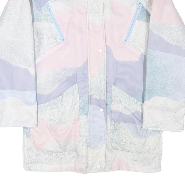 Mens Blue Pink White Abstract Pattern Jacket L Polyester Blend Button Closure